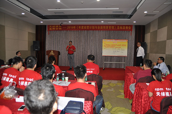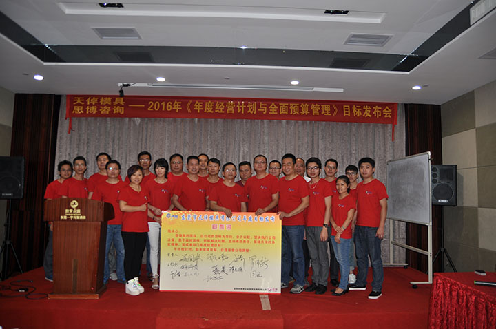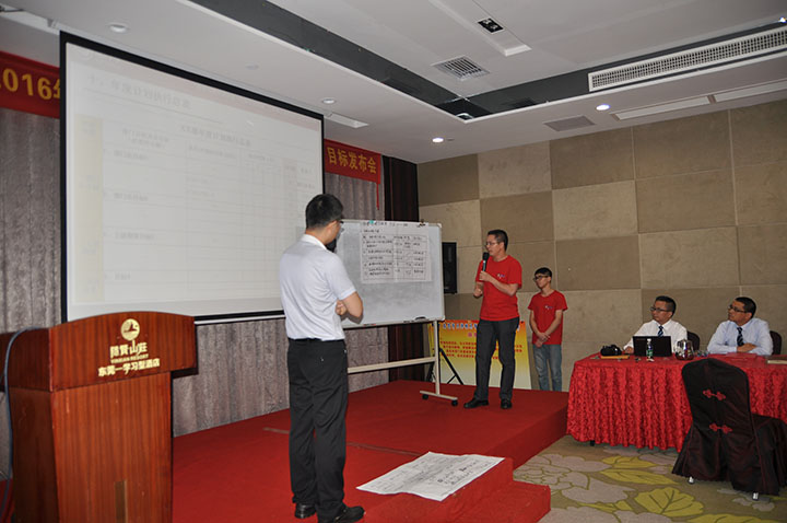 2016年7月31日,東莞市天倬模具有限公司2016年度目標(biāo)發(fā)布會(huì),在東莞麗城假日酒店舉行。天倬模具全體中高管理層,統(tǒng)一穿上了紅燦燦的會(huì)服,氣勢(shì)昂昂地參加目標(biāo)發(fā)布會(huì)。會(huì)議由思博項(xiàng)目組李建新老師與辜慶波老師主導(dǎo)。各部門負(fù)責(zé)人積極參與,他們明確了自己部門的目標(biāo),并得到確認(rèn)和落實(shí)。