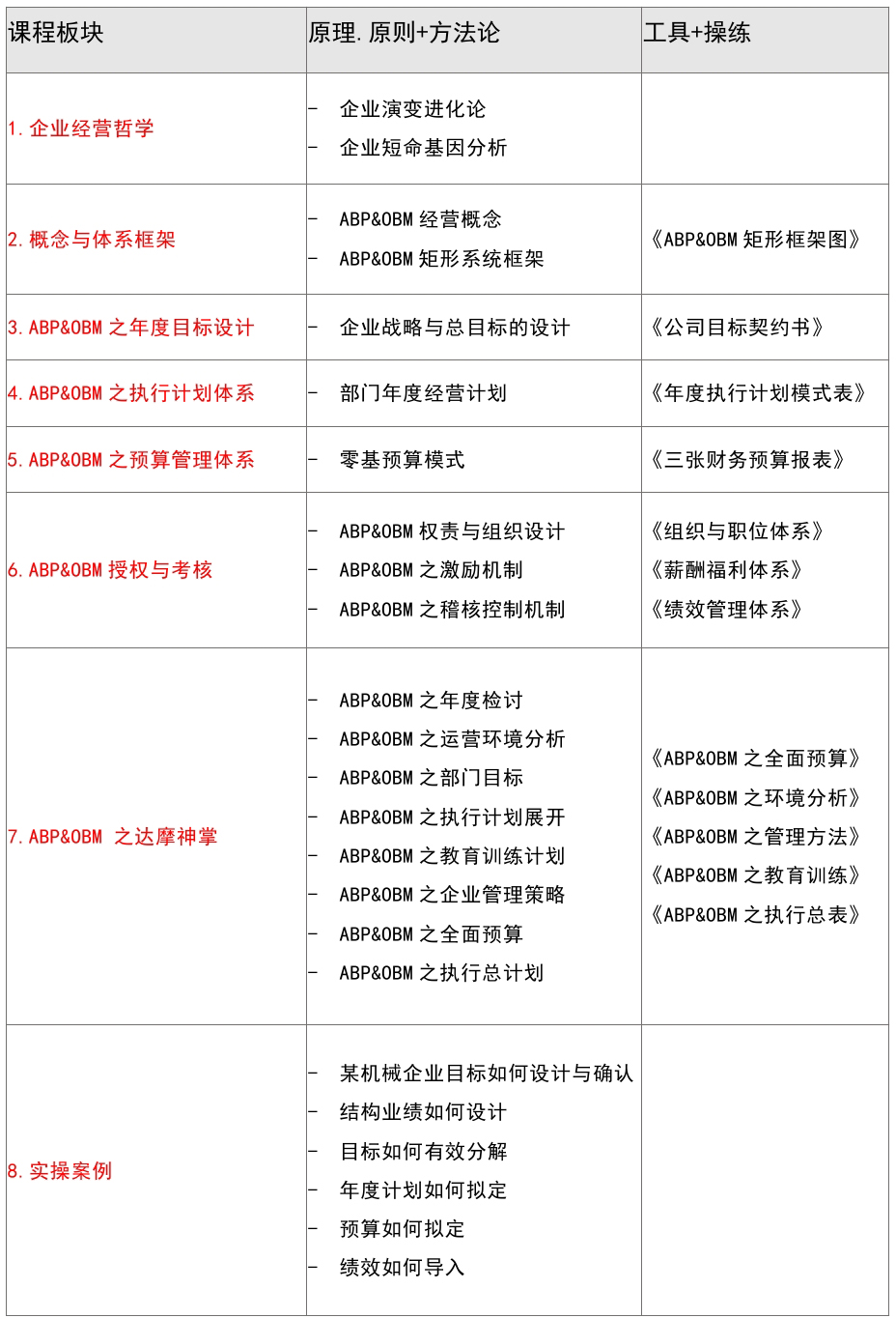 六、課程安排 主題:思博商學院 | 《職業(yè)總經(jīng)理訓練營》系列課程之《年度經(jīng)營計劃與全面預算管理》 時間:2016年10月22日(周六) 9:30-12:00 14:00-18:00 地址:東莞東城設計師酒店13樓蔚藍廳 (東城萬達廣場斜對面) 聯(lián)系人: 張先生(137-2867-1688) 深圳市思博企業(yè)管理咨詢有限公司 年度經(jīng)營計劃與全面預算管理(ABP&OBM)落地供應商